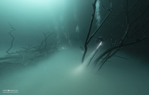 As you begin your descent, you'll notice sunlight penetrating the water, expanding your field of vision. At around 30 meters, you'll encounter a thick layer of hydrogen sulfide formed from decaying vegetation, separating the freshwater above from the saltwater below.